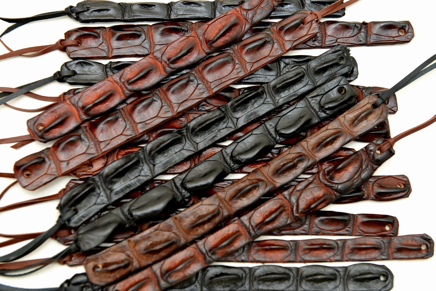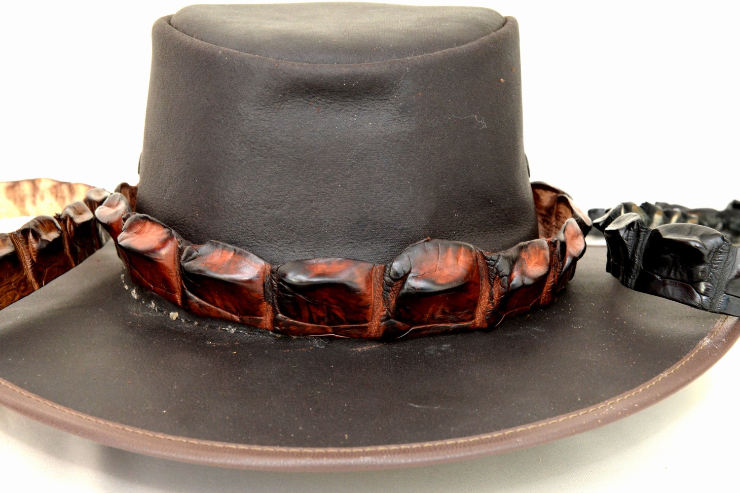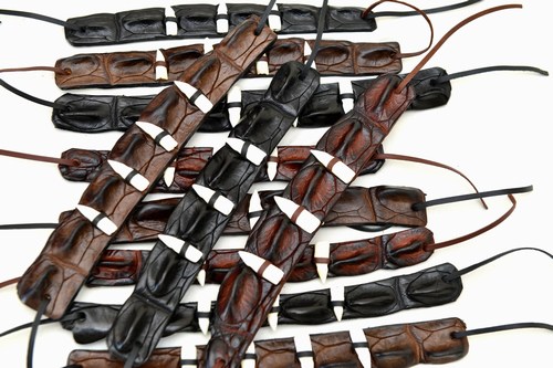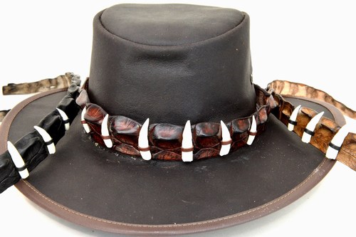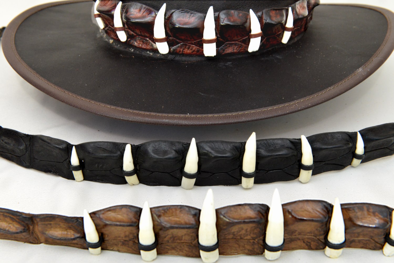 Crocodile leather “horn back” belts, wallets, hatbands, wrist straps and crocodile tooth necklaces..